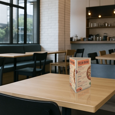 Økonomisk og plassbesparende menykortholder med tre vertikale sider for optimal presentasjon av menyer og prislister i A4-format.