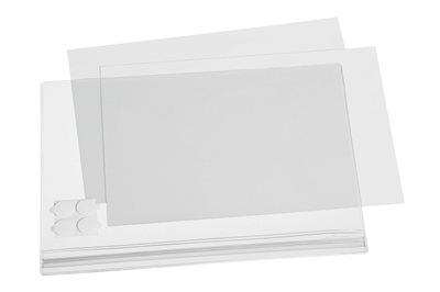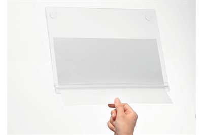 Montering skjer ved hjelp av de fire medfølgende selvklebende putene som kan fjernes uten merker og gjør det mulig å plassere den krystallklare plastlommen nøyaktig der du ønsker.