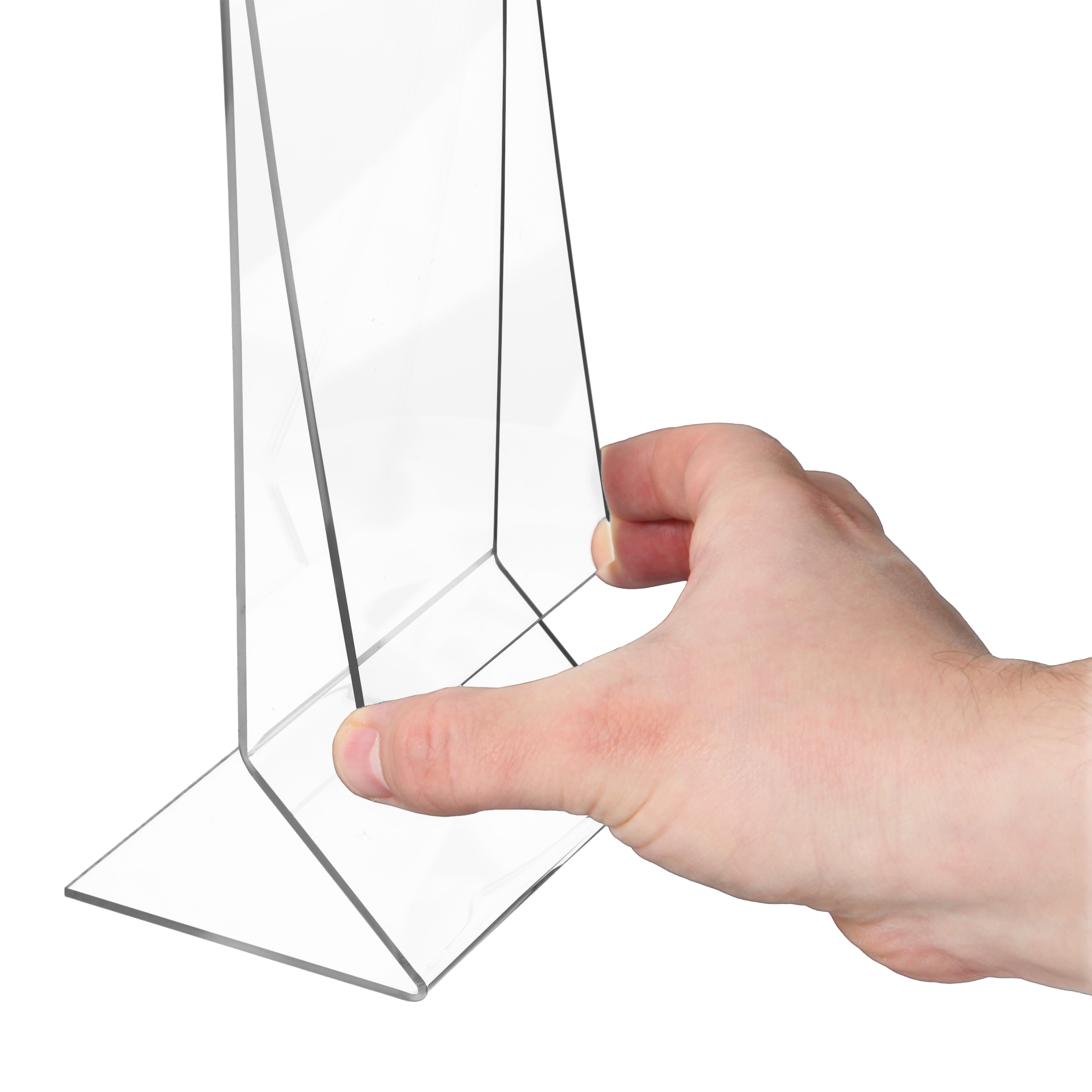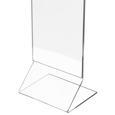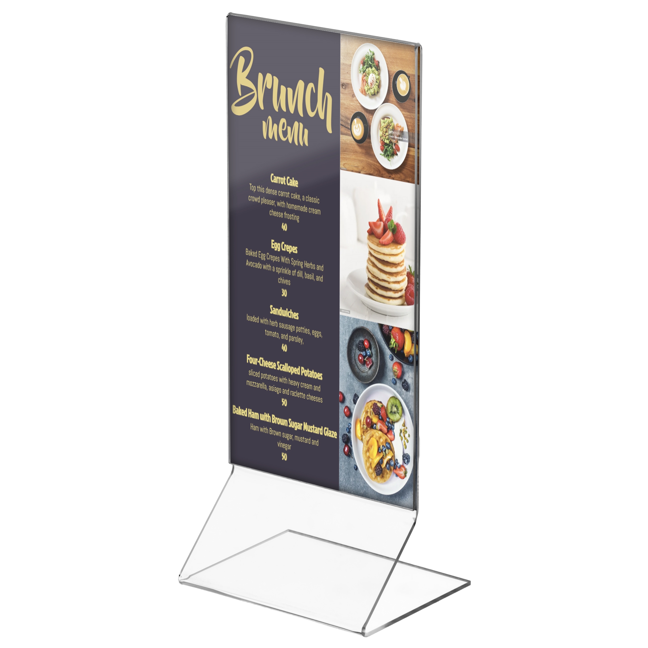 En elegant og moderne menyholder i akryl med Z-formet fot som gir et lett og stabilt uttrykk. Laget i krystallklar akryl som fremhever menyer og informasjon på en profesjonell måte. Perfekt til bruk på bord, disker og resepsjoner.